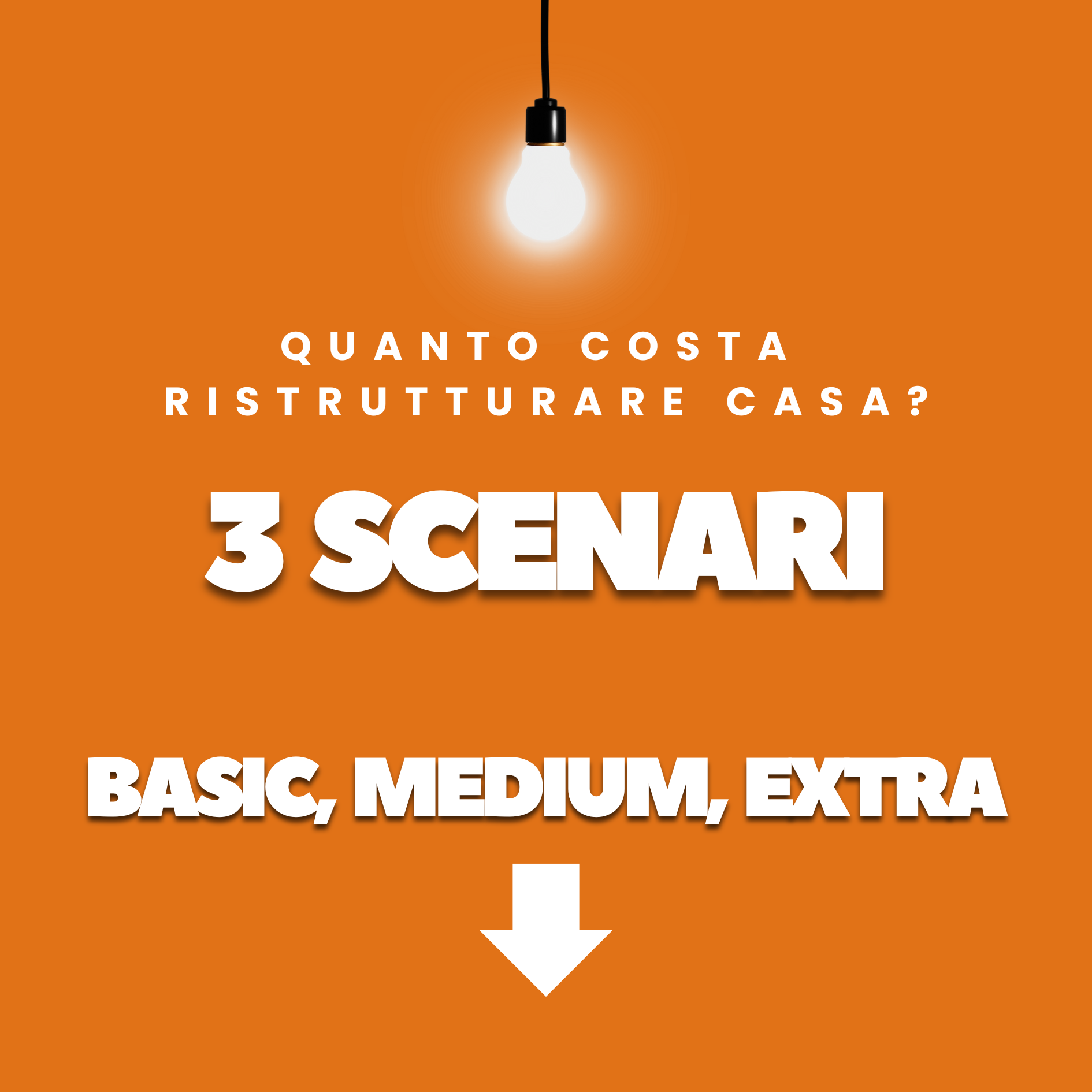 Che si tratti di una cucina abitabile, un soggiorno accogliente, due bagni funzionali, una camera matrimoniale, due camere singole e un ripostiglio, capire quali costi aspettarsi può sembrare un’impresa. Per fare un'ipotesi valutativa, abbiamo elaborato una stima dei costi potenziali suddivisa in tre scenari: Basic, Medium ed Extra. A grandi linee abbiamo ipotizzato una soluzione più economica, una medio alta e una di alta gamma. I prezzi sono calibrati sulle imprese della zona, Bassano del Grappa e circa 50-70 km intorno.